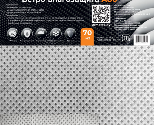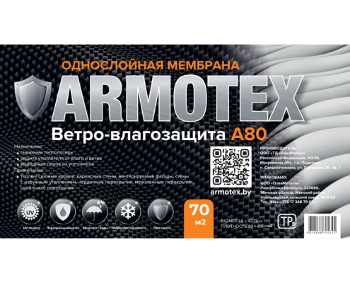 — выведение паров из утеплителяГидро-пароизоляционная пленка ARMOTEX применяется для защиты утеплителя и внутренних элементов стен и кровли от проникновения водяных паров изнутри помещения, защиты от ветра, а также обеспечивает выведение водяных паров из подкровельного пространства и утеплителя. Область применения: теплые скатные кровли, холодные скатные кровли, каркасные стены, чердачные перекрытия, межэтажные перекрытия, цокольные перекрытия.
